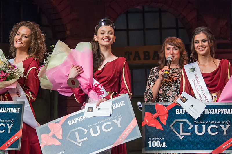 Сред нестихващи аплодисменти и истинско вълнение до финалните места достигнаха три от най-очарователните момичета в Стара Загора - Жанита Христова - първо място и подгласничките Доника Желязкова и Преслава Дончева. Към уважаваната титла най-мащабният моден бранд в България добави и своите специални награди - ваучери на стойност 100 лв. за пазаруване в LUCY Fashion – Стара Загора, които получиха както Царица Августиада, така и нейните подгласнички.