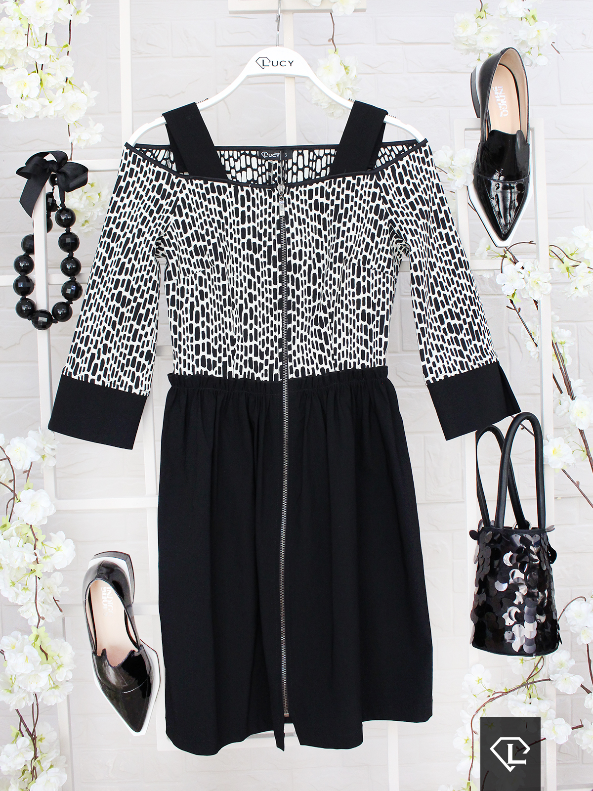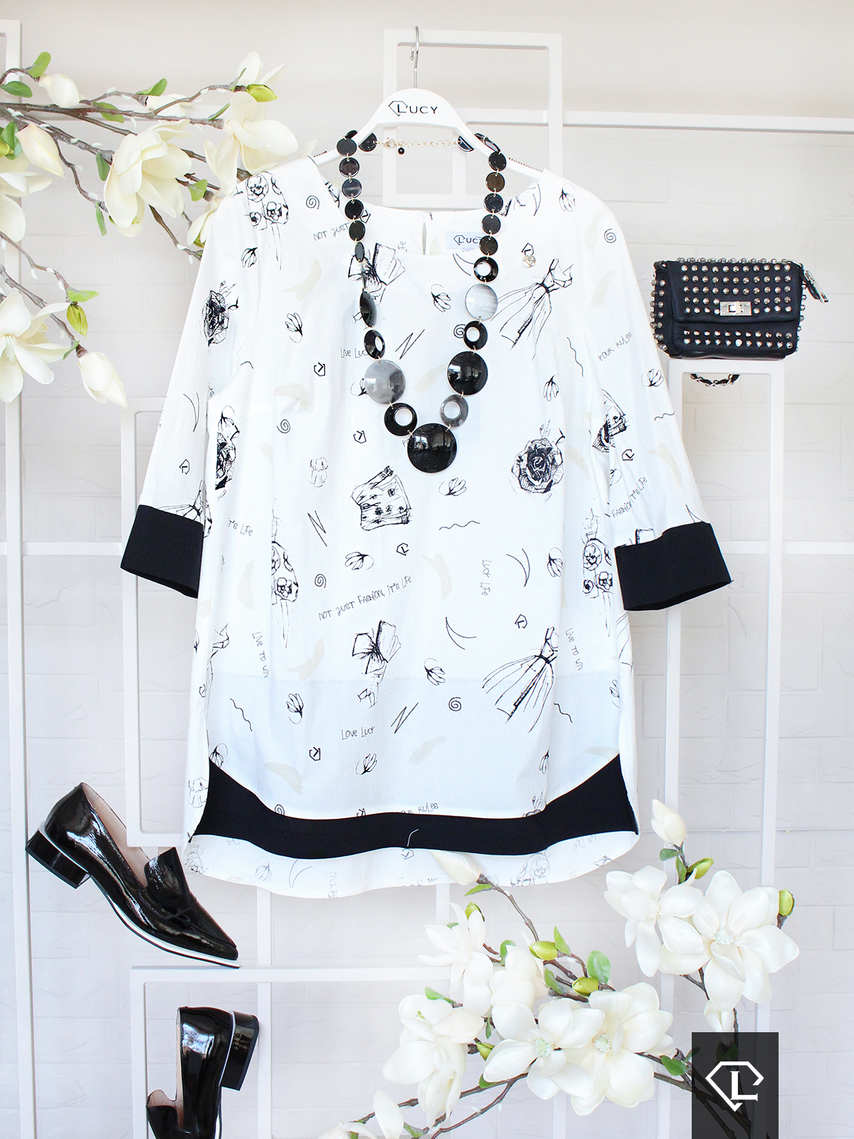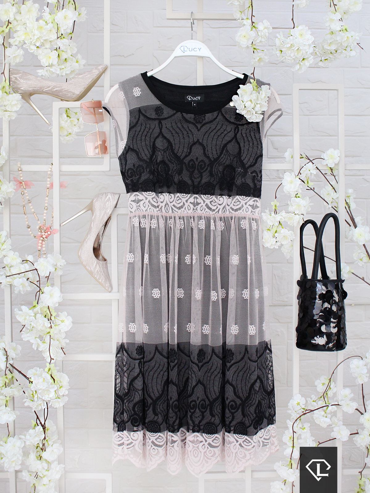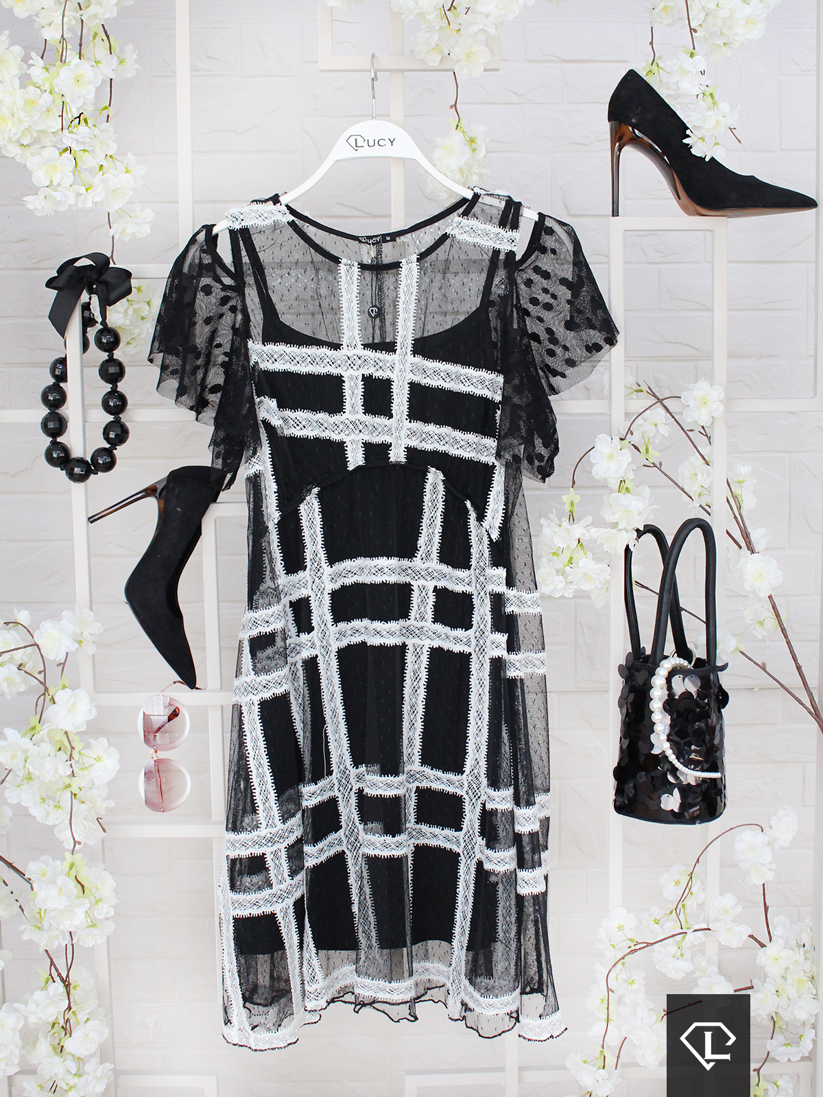 Класическо съчетание на черно и бяло, втъкано в тюл и прекрасна визия! Комбинирай с бижу от перли и аксесоари в черно.