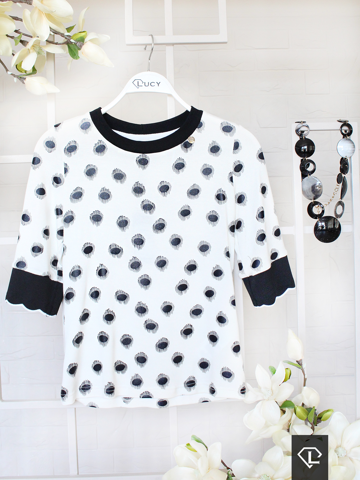 Официален топ в бяло с нежен fashion принт. Комбинирай с официална пола или панталон или с панталон от деним.