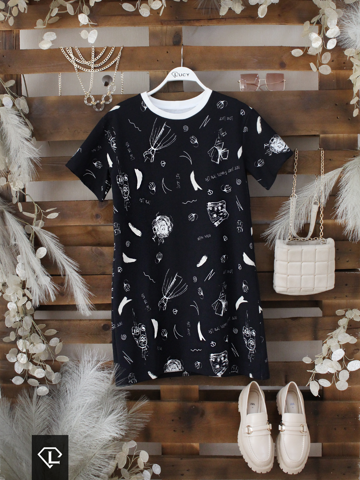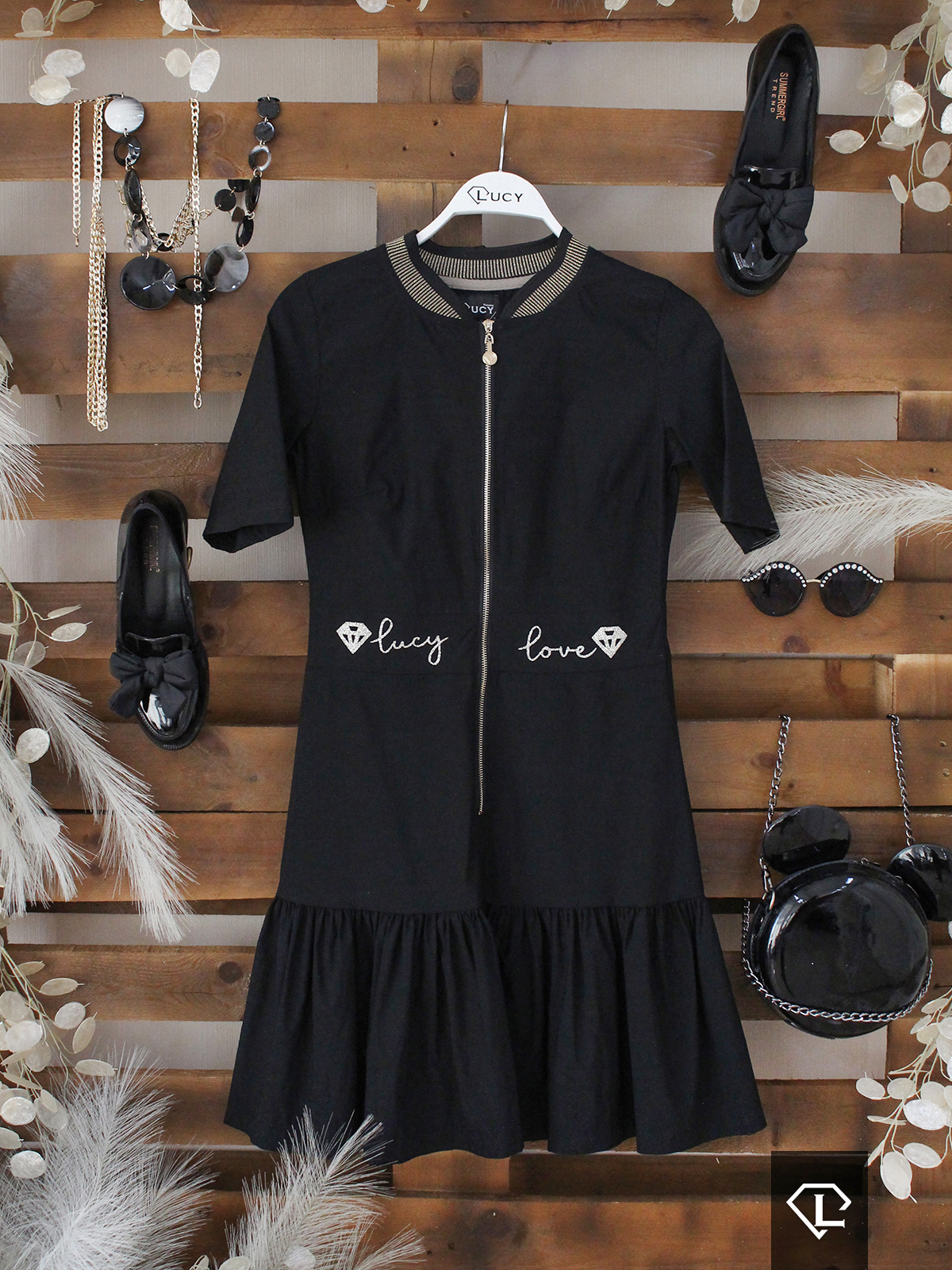 Мини брандът LUCY Love ти е приготвил свободна спортно-елегантна рокля в черно. Комбинирай с яке или късо, street style сако.