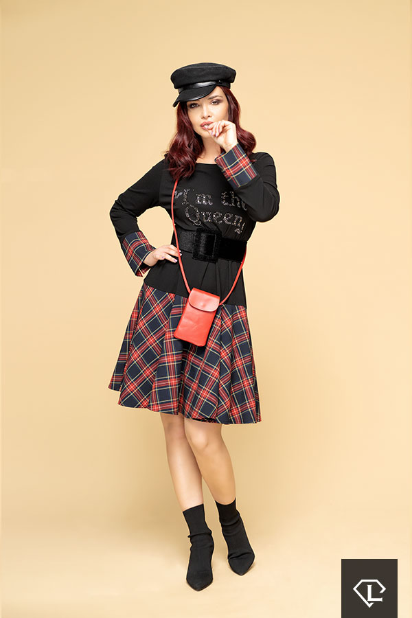 Горна част - трико, долна част - стреч в каре, цялостна визия - очарователна!