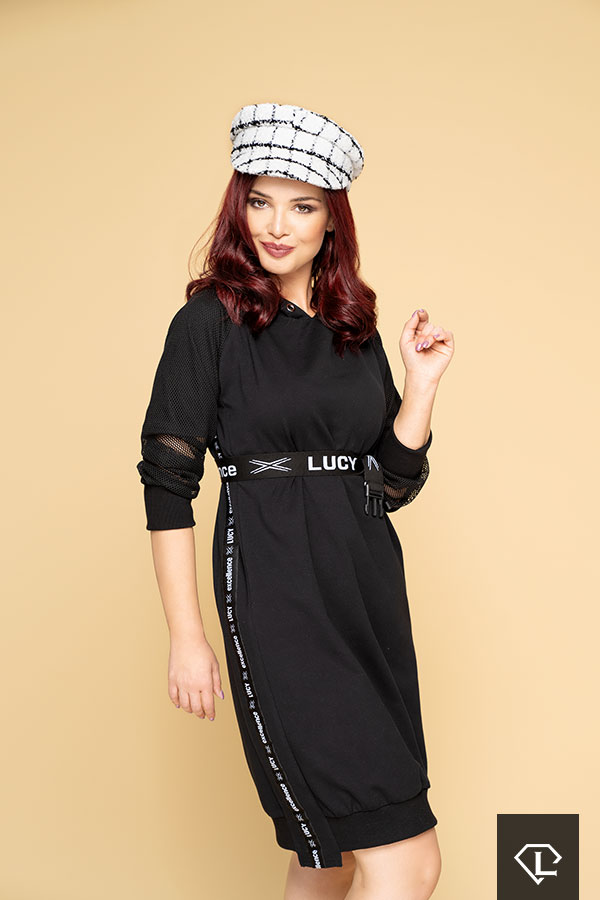 Спортно-елегантна рокля от трико с акцент - мрежа на ръкавите.