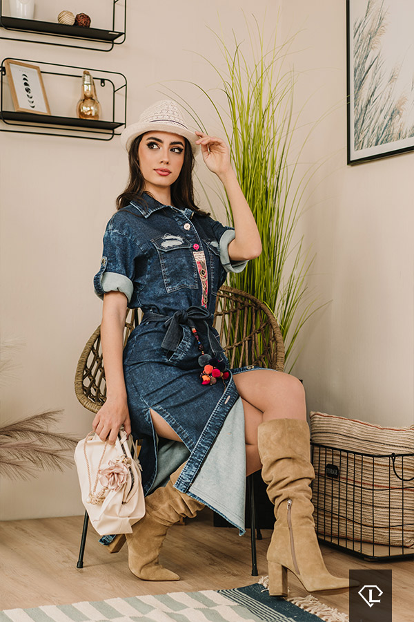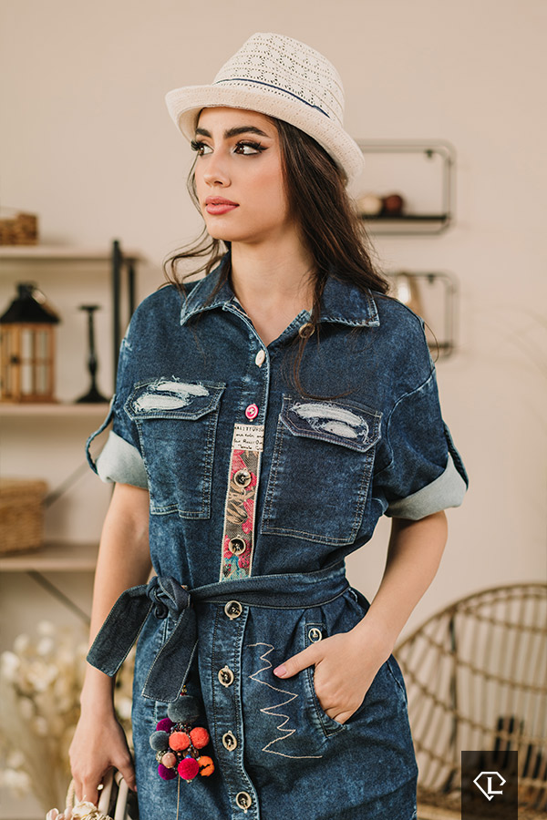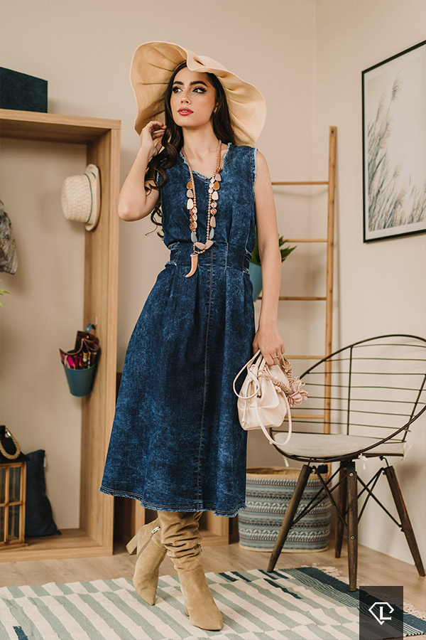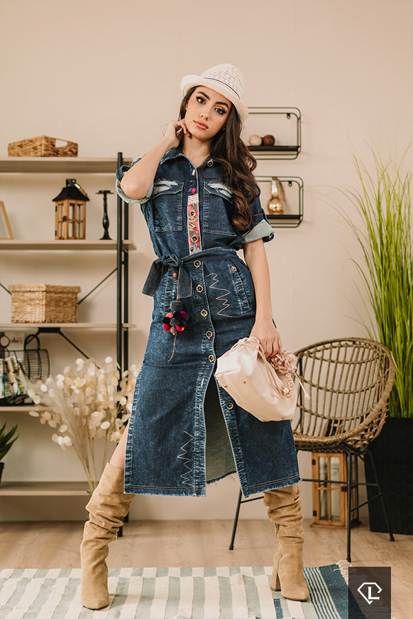 С дължина под коляното и свободна линия, тази дънкова рокля ще ти стане любима!