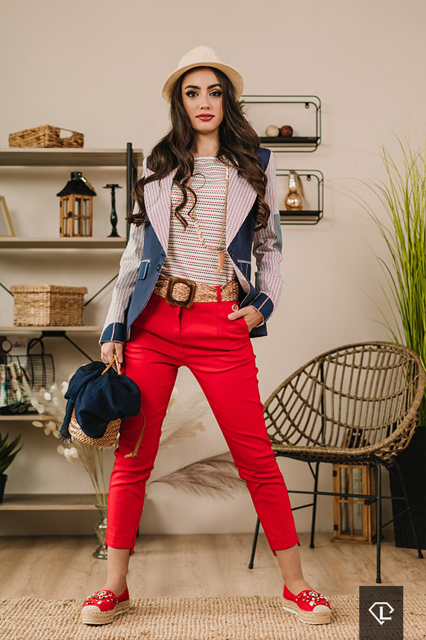 Цветът, който веднага приковава вниманието - червено! Разгледай и сакото, което комбинирахме с този панталон под номер 8 в тази колекция.